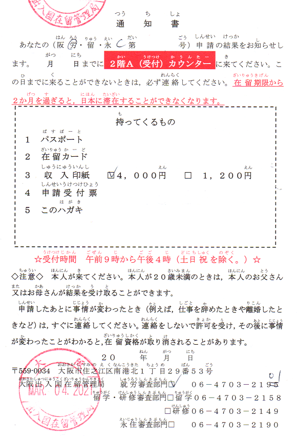- Mình ở Osaka nên mình đến làm thủ tục tại: 大阪出入国在留管理局
